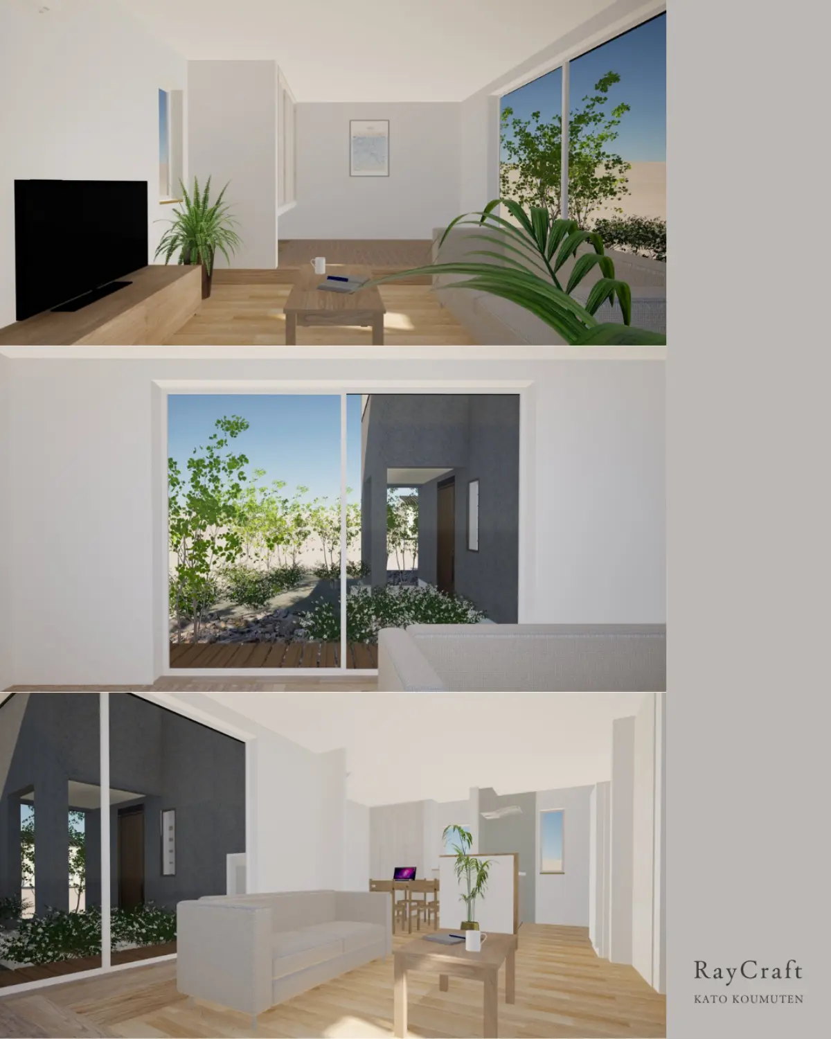 今回は、L型プランを活用してLDK・畳コーナー・バルコニーなど“どこにいても中庭を望める”よう設計された住まいです。