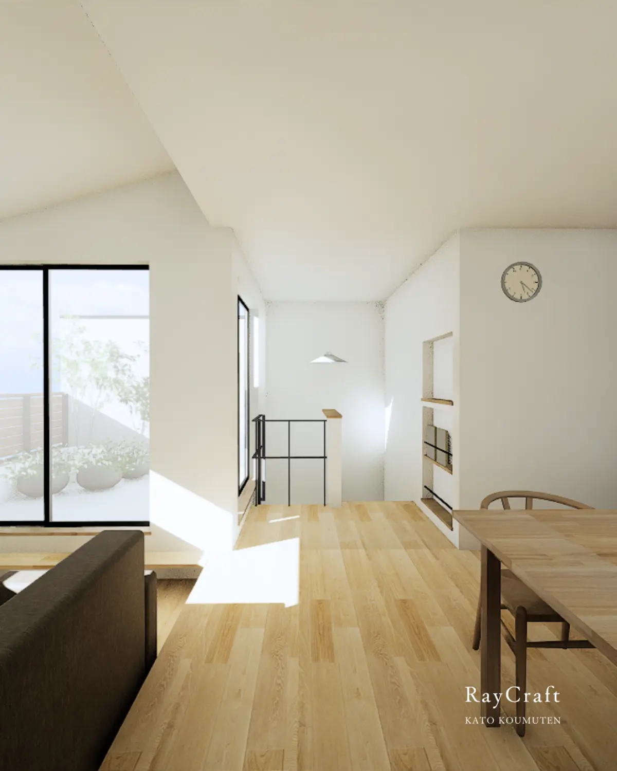 2階リビングにすることで、光の取り込み方や視線の抜け方にも工夫を重ねました。室内とバルコニーが一体的に使える構成は、面積以上の広がりを感じさせてくれます。 - ナチュラルモダンで整えた質感