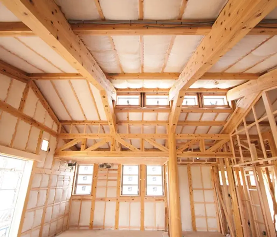 - 日本建築において、古くから神社や仏閣へ用いられている「檜」。高温多湿の日本の風土に適し、高い防虫効果と抗菌性が期待でき、耐久性・保存性からも、日本建築には最適な建築材として「檜」を構造材として採用しています。